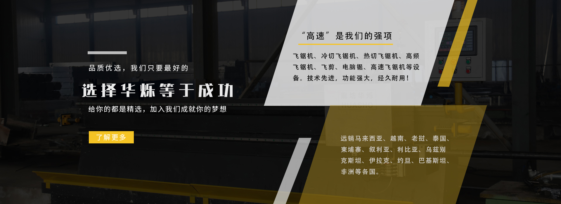 廊坊華爍自動(dòng)化設(shè)備有限公司以誠(chéng)信交朋友、服務(wù)求生存、技術(shù)求發(fā)展為宗旨,多年來(lái)專注研制、生產(chǎn)、銷售高頻焊管生產(chǎn)線輔機(jī)——數(shù)控高頻冷切飛鋸機(jī)為主線,為國(guó)內(nèi)外客戶提供高品質(zhì)的需求產(chǎn)品。如:飛鋸機(jī)、冷切飛鋸機(jī)、熱切飛鋸機(jī)、高頻飛鋸機(jī)、飛剪、電腦鋸、高速飛鋸機(jī)等設(shè)備。 廊坊華爍超過(guò)多年的技術(shù)經(jīng)驗(yàn)和研發(fā)能量累積,有強(qiáng)大的系統(tǒng)集成能力,專門為用戶提供量身定制的控制方案,并承攬依用戶需求來(lái)開(kāi)發(fā)設(shè)計(jì)符合機(jī)械要求的新型生產(chǎn)系統(tǒng)。 華爍生產(chǎn)的產(chǎn)品暢銷國(guó)內(nèi)各省,遠(yuǎn)銷馬來(lái)西亞、越南、老撾、泰國(guó)、柬埔寨、敘利亞、利比亞、烏茲別克斯坦、伊拉克、約旦、巴基斯坦、非洲等各國(guó)。 華爍擁有售后服務(wù)技術(shù)人員,具有服務(wù)上千家客戶的實(shí)戰(zhàn)經(jīng)驗(yàn),可提供視頻指導(dǎo)或現(xiàn)場(chǎng)技術(shù)安裝指導(dǎo)...